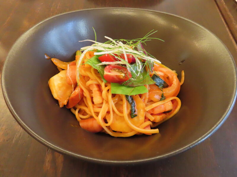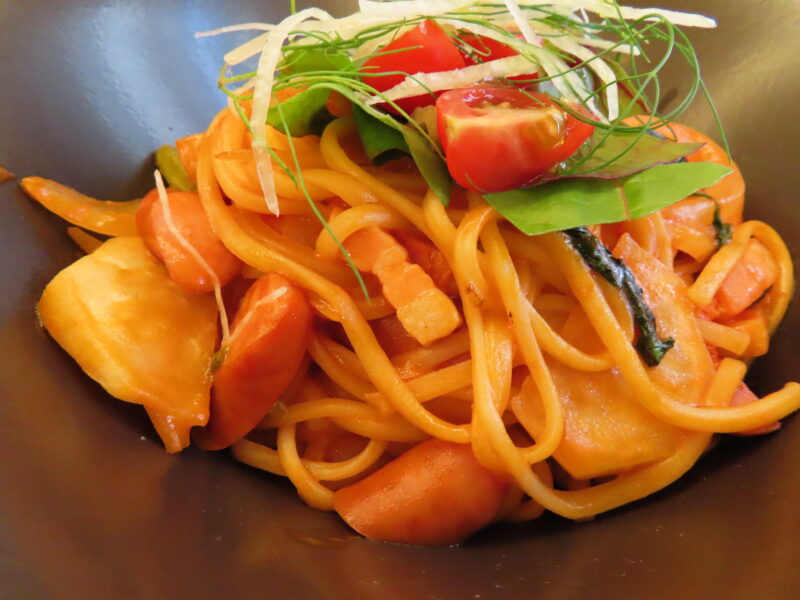 横浜で採れる旬の野菜を使った、濃厚トマトソースが美味しいナポリタン。隠し味に味噌が入っているのでコクがあるんですね。