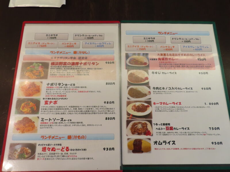 この日のランチ【横浜野菜の濃厚ナポリタン 980円】。
