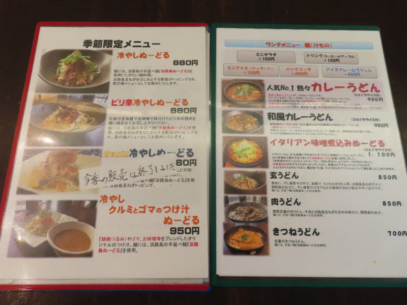 淡路ぬーどるのメニューも多く迷いますね。