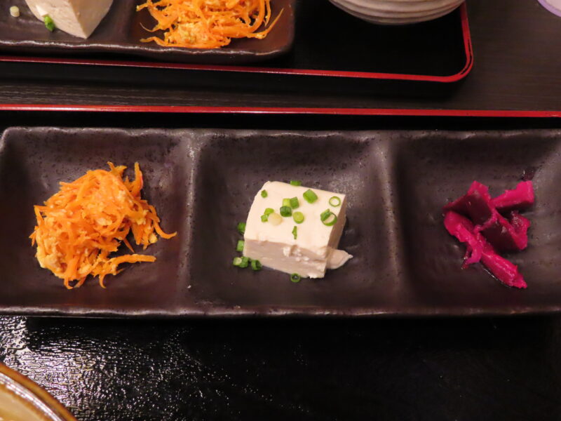 定食には小鉢がついています。この日はにんじんシリシリと島豆腐と漬物。
